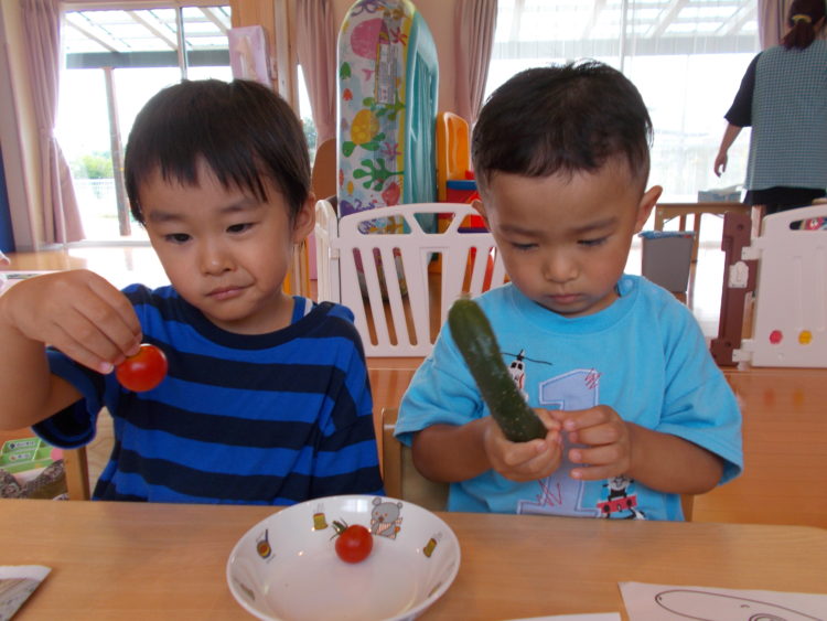 今日は七月の製作のために、近くの農家さんや無人販売へ野菜の観察に出掛けました♪
