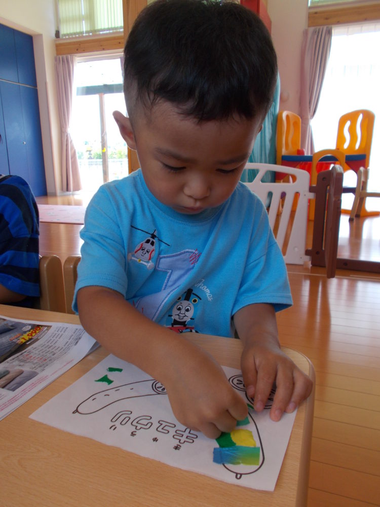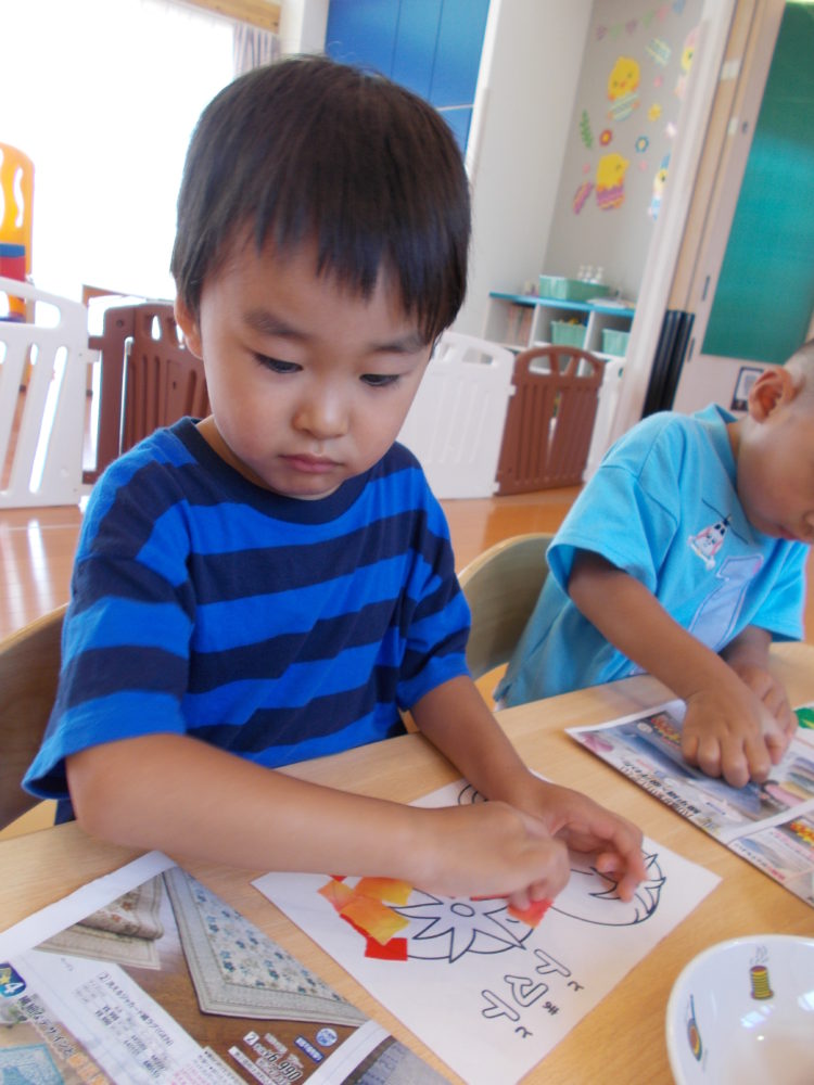 真剣にのり付けする子ども達…(^^)