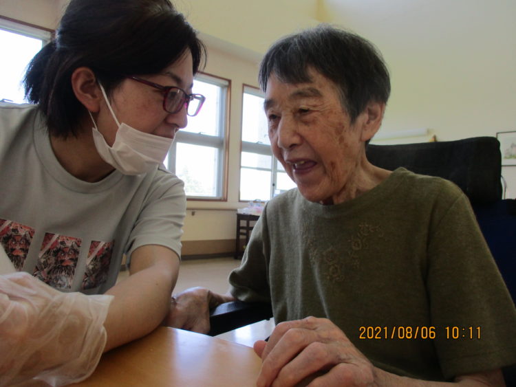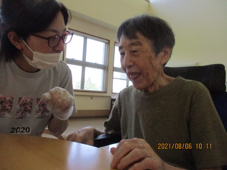 機能訓練指導員の先生にお話を聞くと大きな声を出して口角を開け閉め