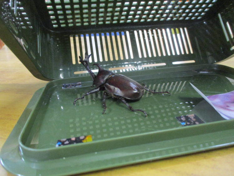 さて本日はI看護師が朝からカブトムシを捕まえてきてくれました!お店に売ってる様な立派なカブトムシですね!突然出された時は皆びっくりしていました!
