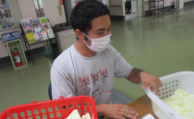 おまけでI介護員の様子です。タオルたたみを楽しそうにやってました。