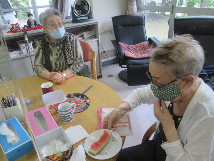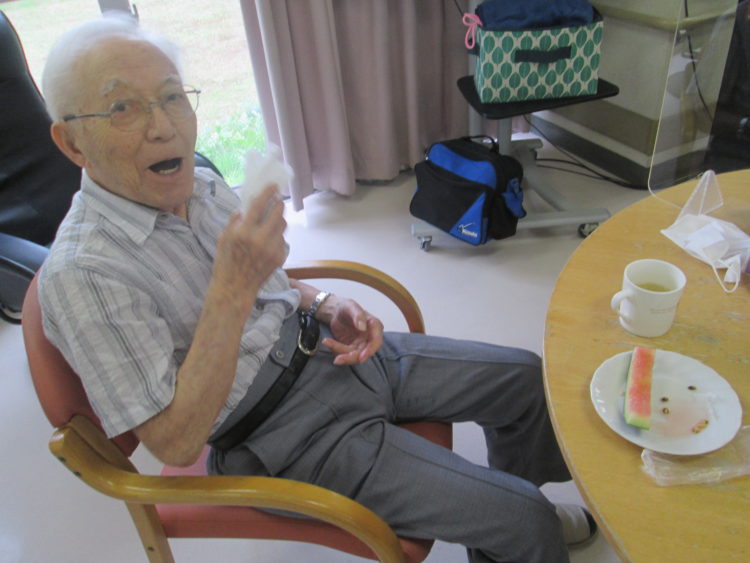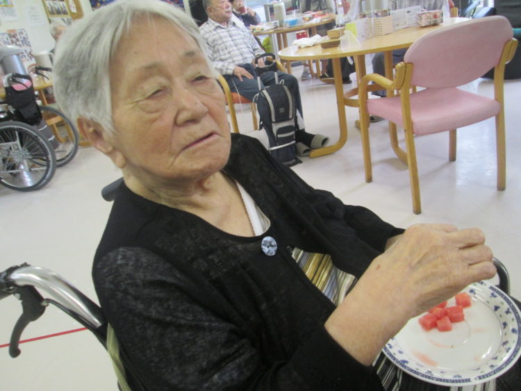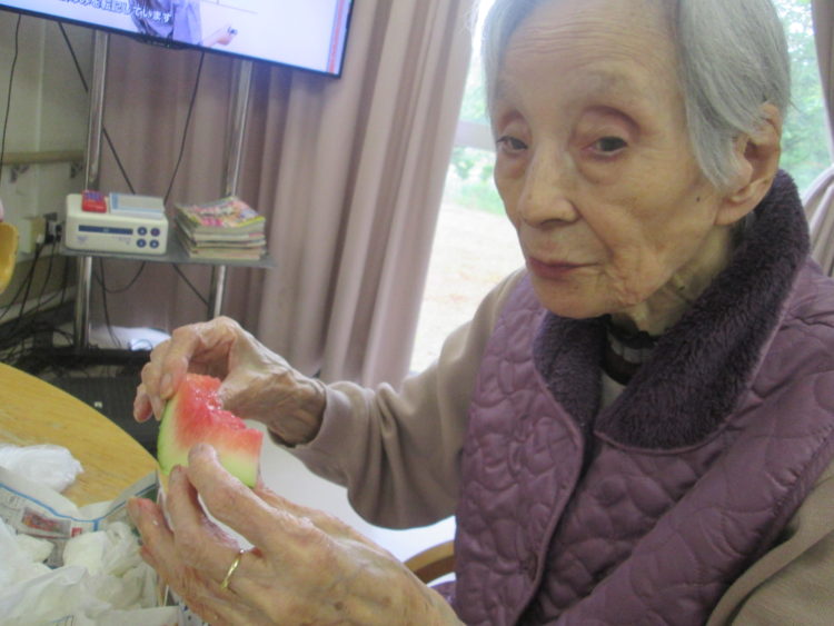 今日も、デイサービスの畑で出来た、スイカを召し上がって頂きました♡