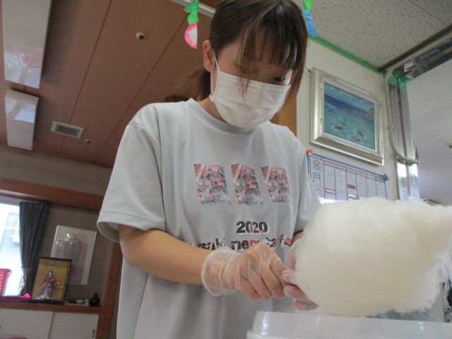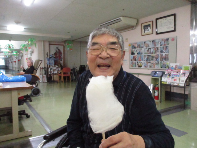 M様とK様もN介護員が作ったわたあめを、「珍しいもの食べるなぁ」とニコニコしながら召し上がっておられました。