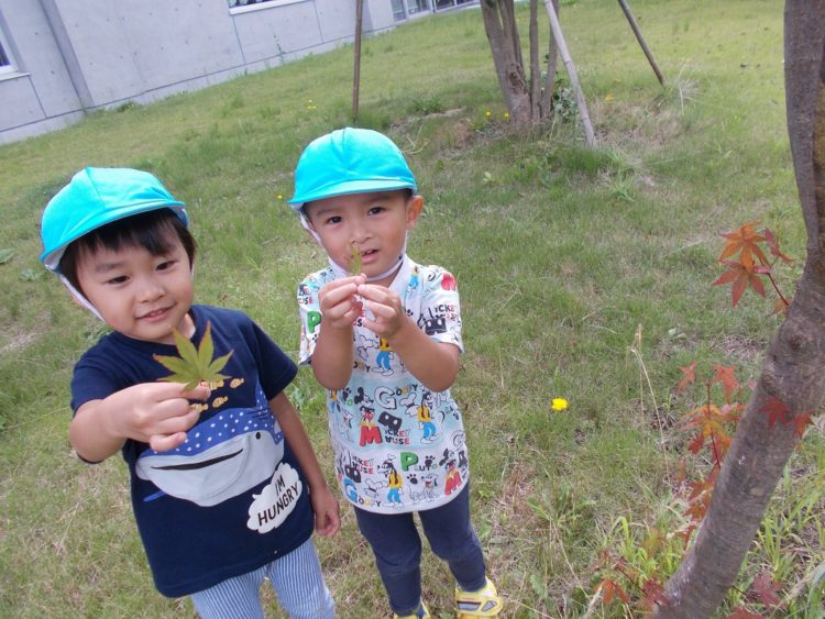 朝みんなで見た『もみじちゃんとチュウ』の絵本に載っていた、もみじを見つけたお兄さん達◎