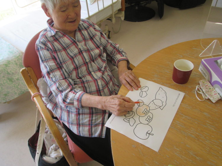 脳トレが難しすぎる方も秋の装飾に使用する塗り絵を手伝って頂きました♡