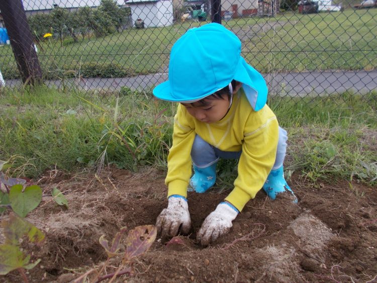 さっそく外に出て、さつまいも掘り開始!