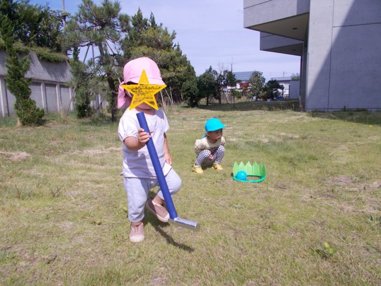 日に日に秋の気配が近付いてきましたね。子ども達は爽やかな風の中、今日はパターゴルフに挑戦しました!