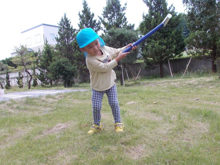初めはうまくボールに当てれませんでしたが、だんだんフォームもさまになり、ボールを飛ばせるようになってきました!