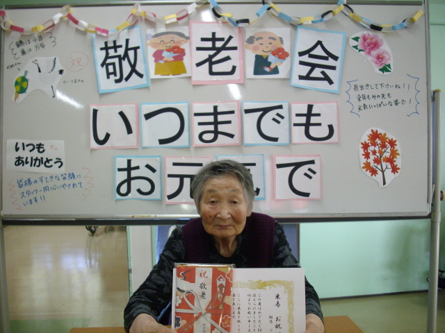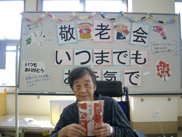 フェイスタオルの粗品や紅白饅頭などが準備されていたり、ショートスティの長寿のお客様には賞状が贈られたりと皆さんとても喜ばれておりました。