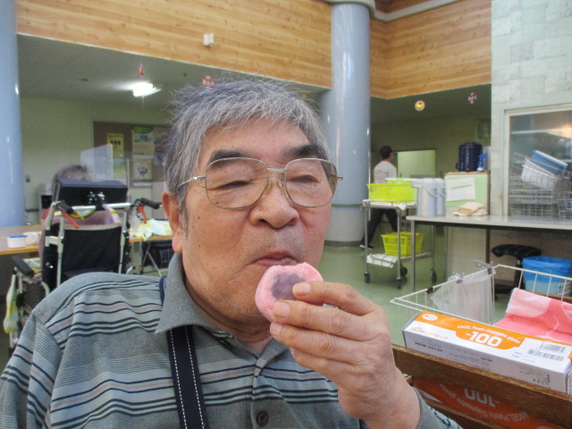 お饅頭も食べられると「たげめぇ」と喜んで頂きました!