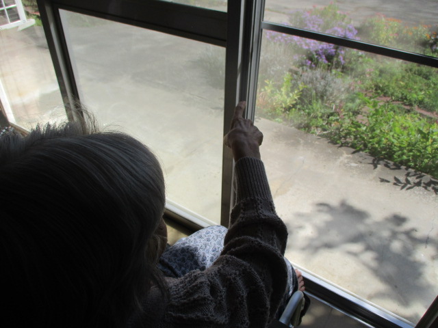 「あの綺麗なお花を見ているんだよ」とお気に入りのお花を教えてくれました♪