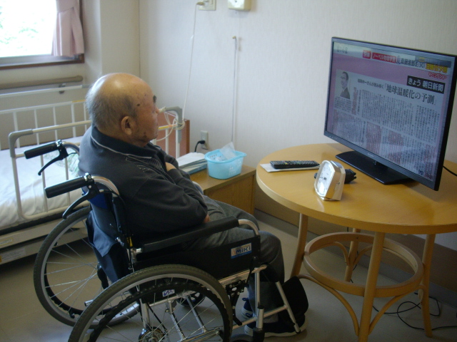 おはようございます。今日は、日常の様子を写して見ました。口腔ケアを行ったり、テレビをみていたり等、様々ですが、日々楽しく生活されています。寒くなっていきますが、これからも元気に過ごしていきましょう。
