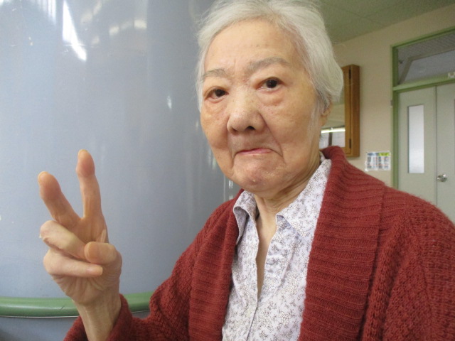 K様はちょっと眠そう…職員に声掛けされ笑顔でパシャリ♪