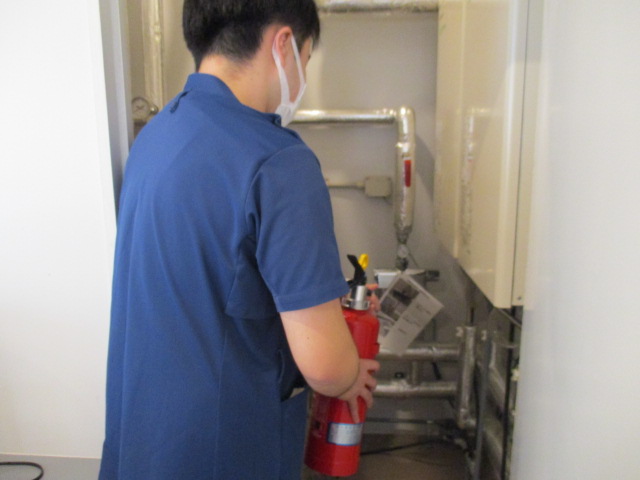 1階の機械室から火災が発生した為、初期消火を行いました。