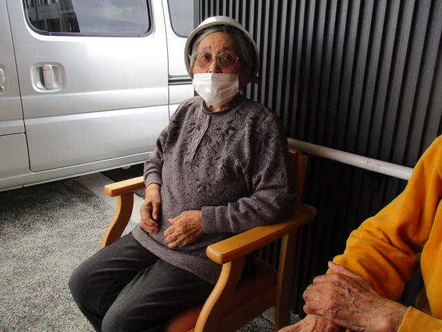 地震発生後、おさまってからお客様にヘルメットを被って頂きました。
