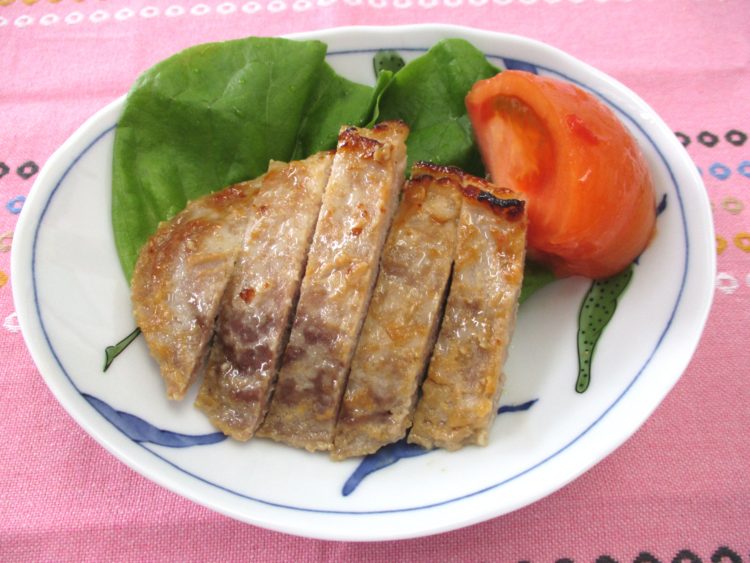 ご飯、きくらげのスープ、豚肉のみそつけ焼き、ふきと笹かまの炊き合わせ、車麩の辛子和え、