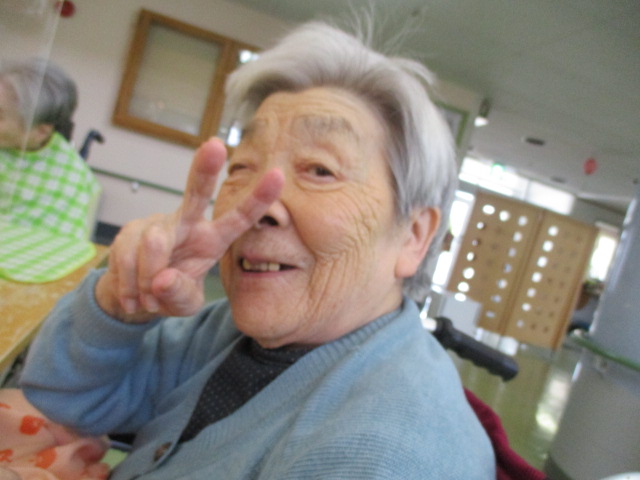 お茶を飲みながら、「今日のごはんはなんですか?」と楽しみにしているご様子!
