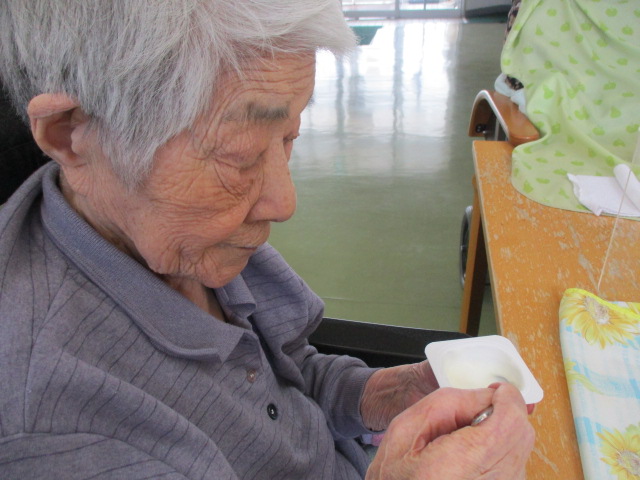 ゆっくりとご家族様がご持参して頂いたヨーグルトを味わっているK様!「明日は何がたべれるかな」とウキウキされていましたよ!