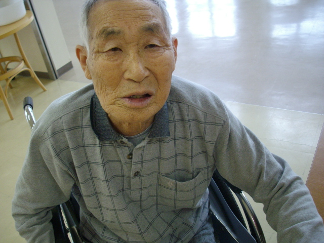 こちらも同じく昼食前のK様。ご飯までもう少し腹を空かせようかな、と車椅子を上手に乗りこなしホールを運動しておりました。運動の後のごはんはおいしかったのか、全部食べており とても満足げな笑顔が印象的でした!