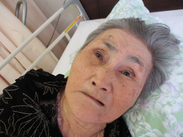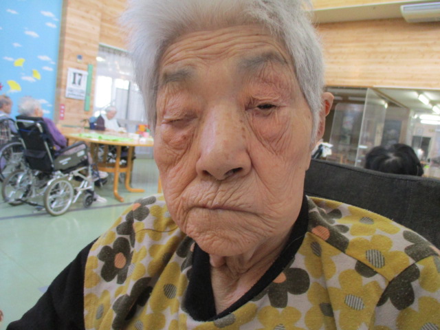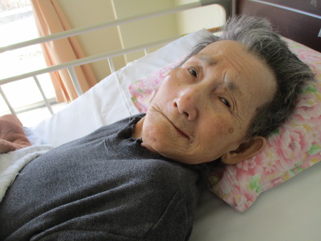 J様です。お休みの所でしたが写真を撮らせて頂きました。お声掛けすると「はーい」と返事を返して下さり頷いておりました。