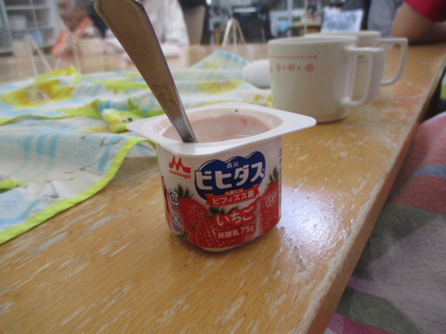 最後にK様です。ご家族様が持参されたヨーグルトを提供させて頂きました。終始眠そうなご様子でしたが本日も風邪等ひかずに過ごされております。