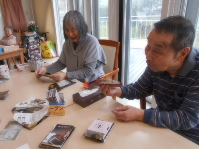 本日の写真は皆さまでちらし箱をつくっている所です。