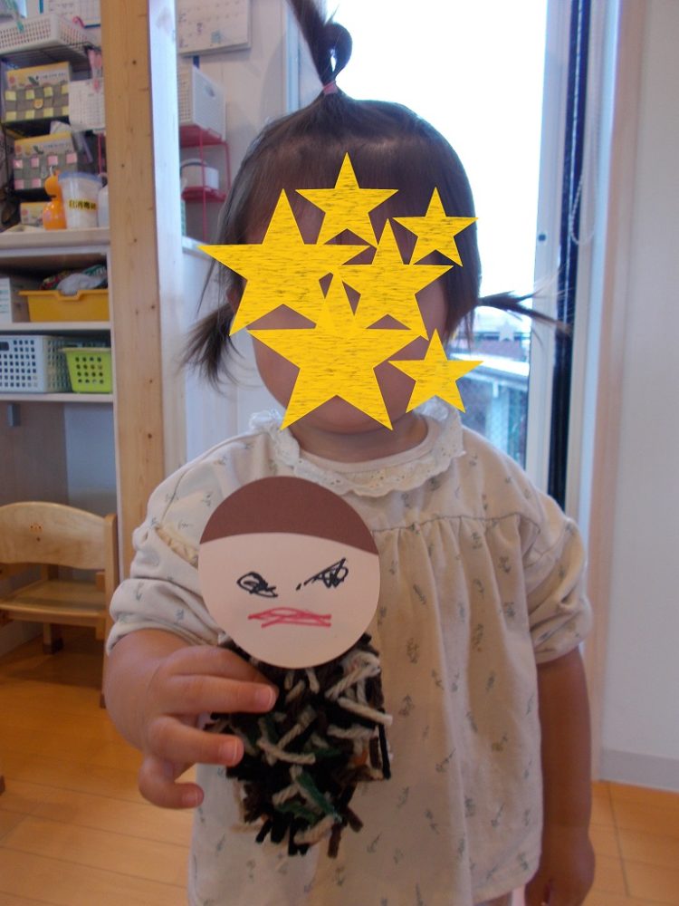 今日のうさぎ組さんとぞう組さんは『みのむし』を製作しました。