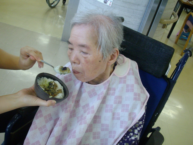 「美味しいですか。」と話すと「美味しい」と笑顔見られていました。