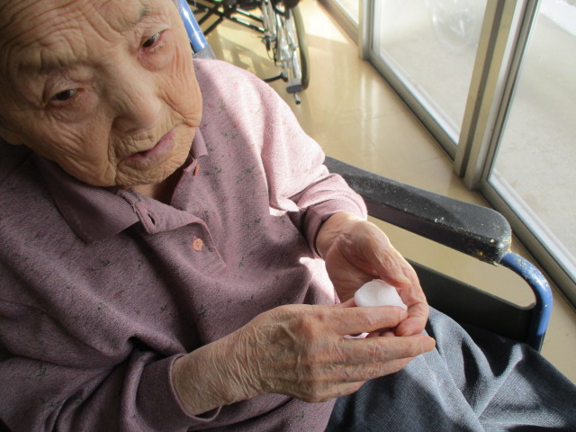 N様に雪玉をお見せし渡してみると「早くごはんが食べたい」と話されていました。