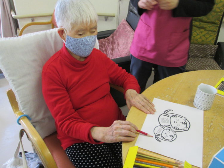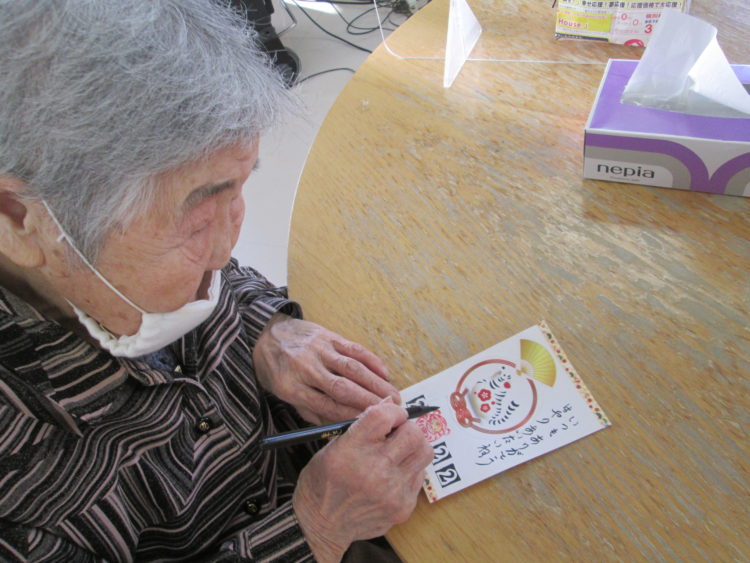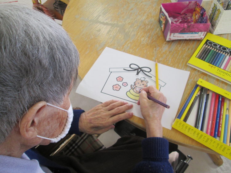 例えば・・・午後の工作レクでは、年賀状作りを致しました!