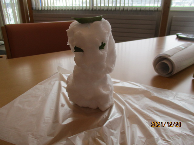 M様に見せようと、Mリーダーが雪だるまを作って