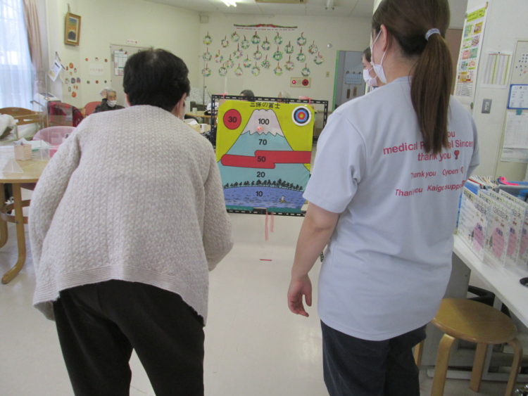 本日のデイサービスでのレク活動は「ボールでダーツ」を行いました。