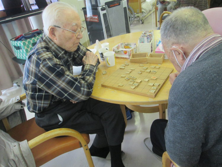 午後は脳トレを予定していましたが、脳トレに参加する方、塗り絵に参加する方、将棋をする方、と皆さん思い思いの時間を過ごしており