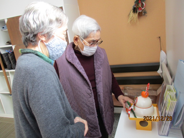 鏡餅を玄関にS様とK様と一緒に飾り付けを行いました。
