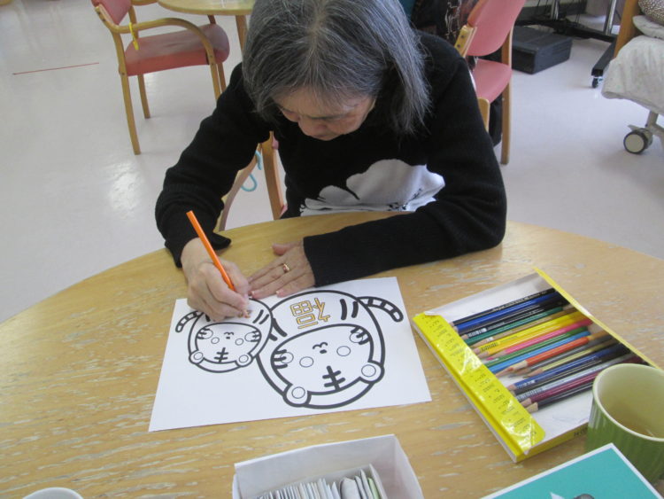 来年の干支でもあります【寅】の塗り絵を一生懸命塗られていました♪たくさんの色を使っており完成が楽しみです💛