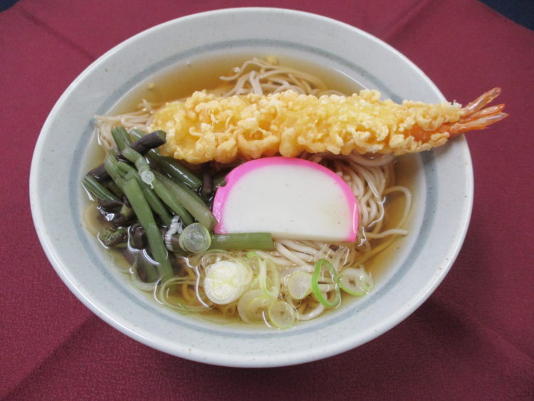 年越しそば、カリフラワーと鶏肉の炒め物、身欠きにしんの酢味噌和え、揚げ出し豆腐のなめ茸かけ、桜大根漬