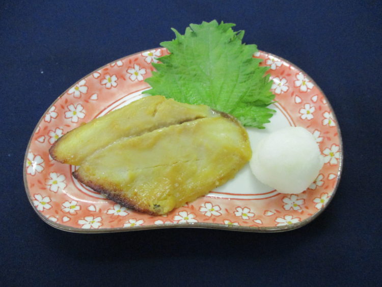 ご飯、花麩と三つ葉の清汁、さばの西京焼き、卯の花とひじきの炒り煮、ほうれん草のなめ茸あえ、つぼ漬、りんごゼリー