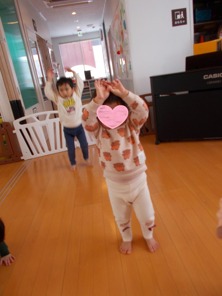 クラス合同でリトミック遊びをしました♪なじみのある歌やピアノのリズムにあわせて、全身運動を楽しみます。ぞう組のKくんは、理解力や運動能力が高まり、ブリッジができるようになりました!!