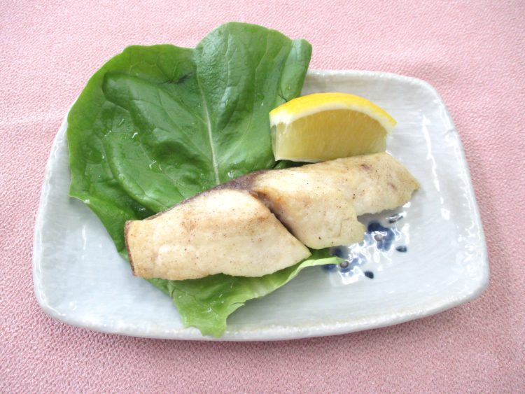 ご飯、もやしと油揚げのみそ汁、シルバーのムニエル、鶏肉と白菜の炒め物、