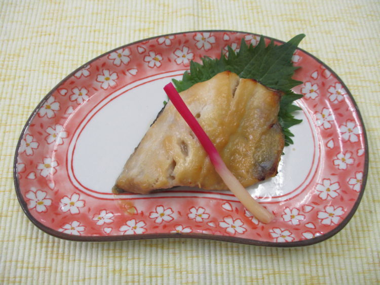 <お品書き>ご飯、豆腐とかいわれのスープ、ほっけの西京焼き、チンゲン菜とハムのソテー、ミニコロッケ、青森県産ごぼうのサラダ、白かぶ漬