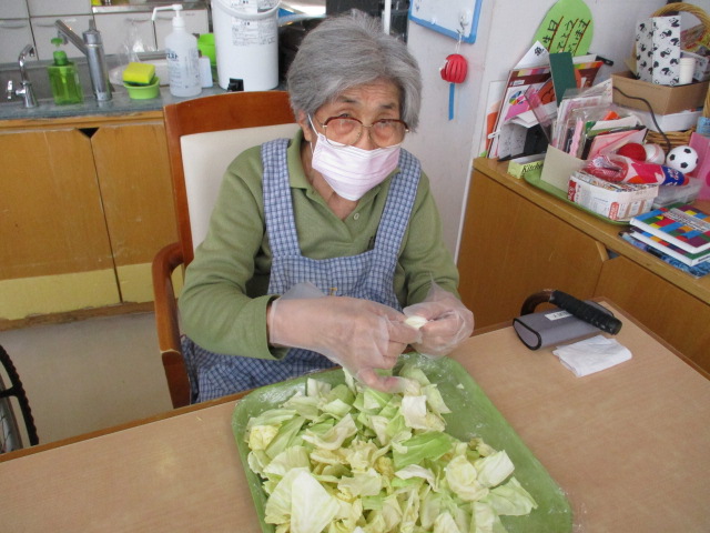 Y様へキャベツを切った物を、混ぜやすいようにバラバラにしていただいています。これが時短になるんですよね(^▽^)/?