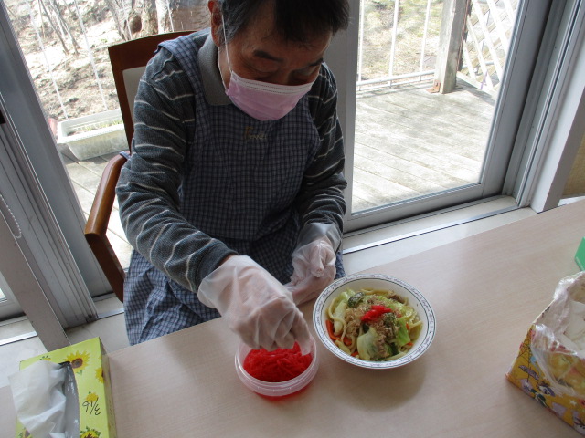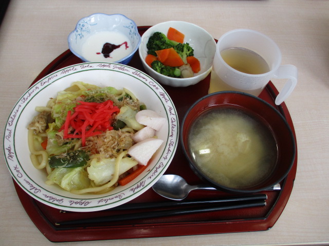 さて今日は調理活動として、皆さまのリクエストにお応えして「焼うどん」を作って頂きました。