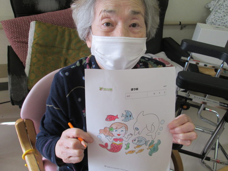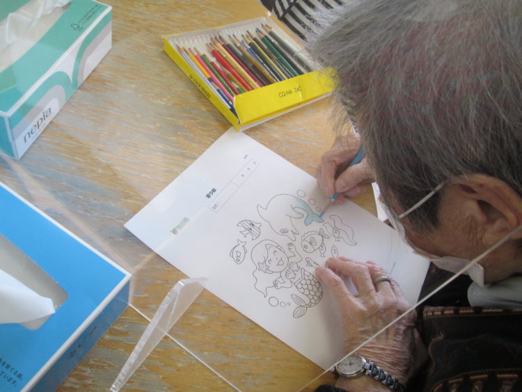 脳トレが少し難しいお客様には塗り絵を準備させて頂きました😊
