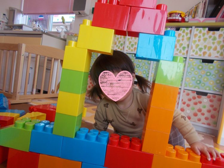 Hくんもお姉さんと保育者の真似をして上手にブロックを組み立てていました☆