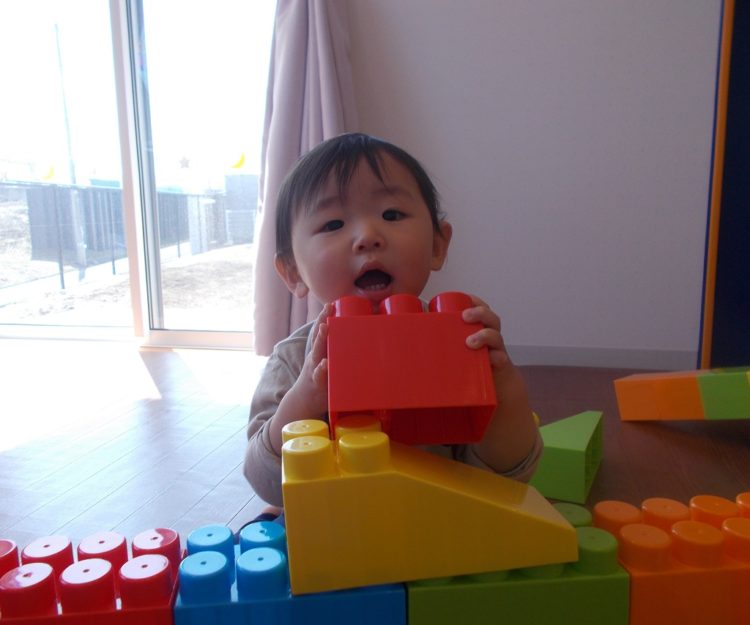 ぽかぽか暖かく、吹く風が心地良い春の日、今日は大型ブロックを使って遊びましたよ♪