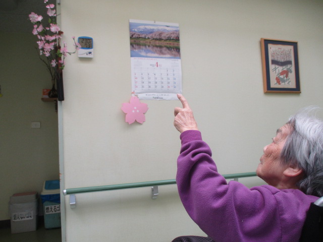 また、廊下に飾られている桜の花を見て、今年もまたいい桜見れるかなと、待ち遠しい様子でカレンダーを見ているお客様もいらっしゃいました。