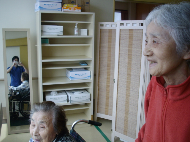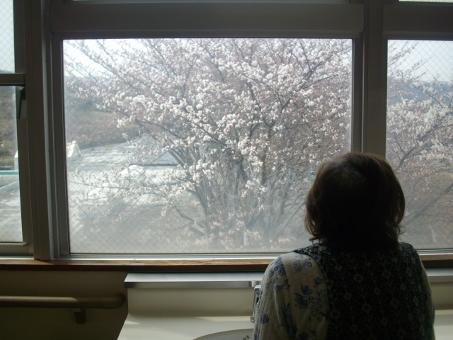 「ここからだと良くみえるねぇ」と嬉しそうに話すS様。本日は調子が良いらしく、テーブルに掴まりながら立ち上がり桜を眺めておりました。もっと桜が咲いたらまた見に行きましょうね。