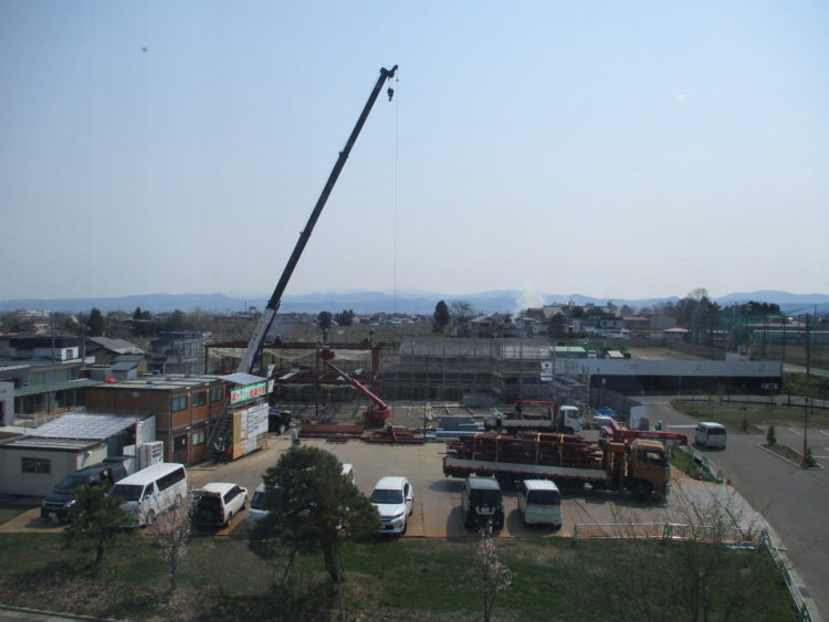 近頃は、大きな重機も出入りし、形になってきました。お客様は自分の家が出来ると思っているらしく、「完成が楽しみですね」と声を掛けると「うん、うん」と頷いていました。