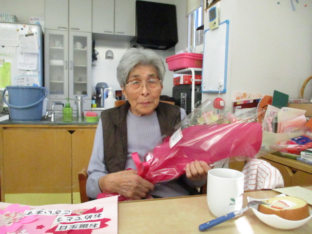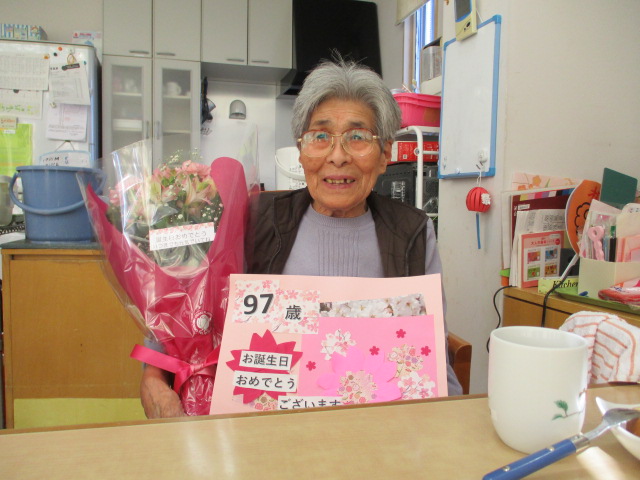 今日は、ベルのお客様の97歳の誕生日です。お祝いのためにお越しになられたご家族様と窓越しの面会となりましたが大変喜んでおりました。ご家族様が帰園されたあとも嬉しそうにバースデイカードを読んでる姿は微笑ましいとものとなりました。午後はベルのお客様がY様をハッピーバースデイでお祝いしました。お客様の中には97歳と言う年齢に驚かれている方もいらっしゃり、あと3年で100歳だなー等と会話が盛り上がる場面もありました。皆さんで一緒に美味しくケーキを頂き楽しい誕生日となりました。
