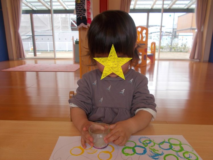 Hくんは勢いよくスタンプを押し、Sちゃんは慎重に慎重にスタンプ遊びを楽しんでいました!
